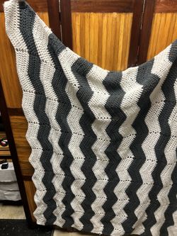 Crochet Throw Blanket Charcoal Grayish & White Chevron Wavy Pattern Wavy Handm$60Magnolia Springs, AL