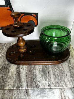 Vintage Walnut Pipe Rack with Green Glass Humidor – 6 Pipe Stand, Mid-Century$40Magnolia Springs, AL