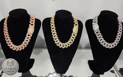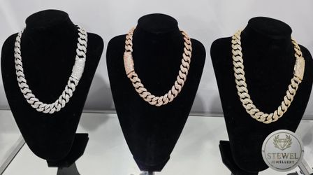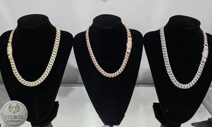 15 mm 22 y 24 Inch Cubana Endiamantada Enchapada en Plata S925,Oro Rosa 14k y Oro 14k $200Miami, FL