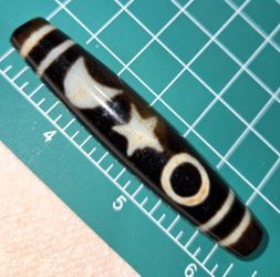 Very Rare Old Himalayan Dzi Motif. 3 Suns, 3 Moons, 3 Stars, and 4 Stripes.$200Houston, TX