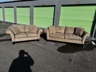 FREE π DELIVERY AND INSTALLATION - Raymour & Flanigan Light Brown Microfiber Sofa Love and Pillows$440Philadelphia, PA