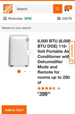 8,000 BTU (6,000 BTU DOE) 115-Volt Portable Air Conditioner with Dehumidifier Mode $320Riverview, FL