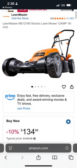LawnMaster ME1218X Electric Lawn Mower 12AMP 19- Inch$70Huntington Beach, CA
