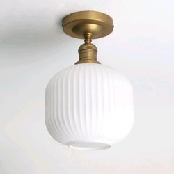 Vintage Flush Mount brass/ milky white ribbed glass shade NEW IN BOX $140 EBAY$120Sacramento, CA