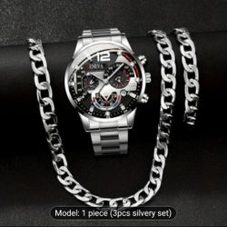 3pcs Men's fashion set: Classic business stainless steel quartz bracelet calendar, Silvery bracelet and Silvery necklace$20Kent, WA
