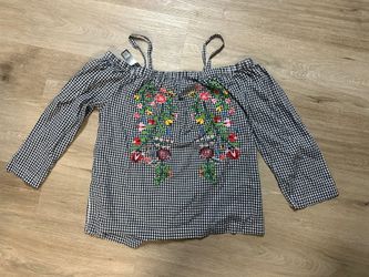 Velvet Heart Gingham Cold Shoulder Long Sleeve Embroidered Top Size Medium NWT$11Greensburg, PA