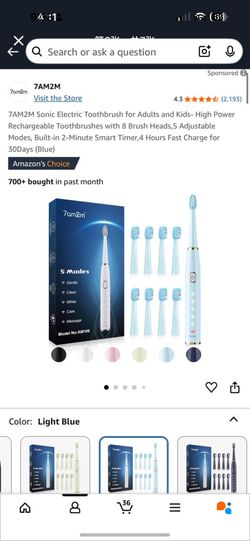 7AM2M Sonic Electric Toothbrush for Adults and Kids- High Power Rechargeable Toothbrushes with 8 Brush Heads,5 Adjustable Modes, Built-in 2-Minute Sma$1Riverside, CA