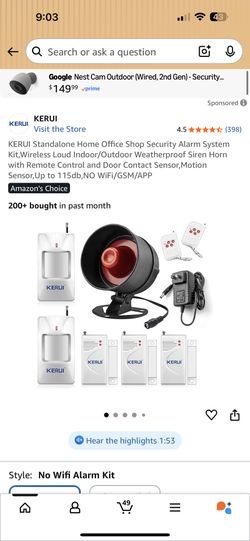 KERUI Standalone Home Office Shop Security Alarm System Kit,Wireless Loud Indoor/Outdoor Weatherproof Siren Horn with Remote Control and Door Contact $15Riverside, CA