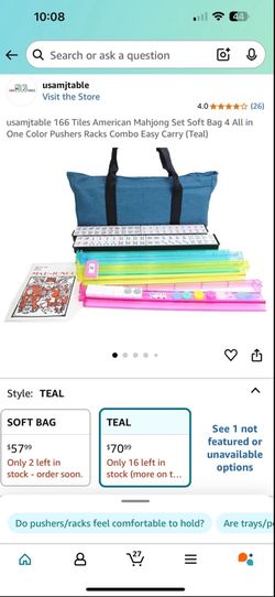 usamjtable 166 Tiles American Mahjong Set Soft Bag 4 All in One Color Pushers Racks Combo Easy Carry (Teal)$20Riverside, CA