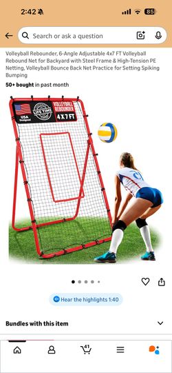 Volleyball Rebounder, 6-Angle Adjustable 4x7 FT Volleyball Rebound Net for Backyard with Steel Frame & High-Tension PE Netting, Volleyball Bounce Back$20Riverside, CA