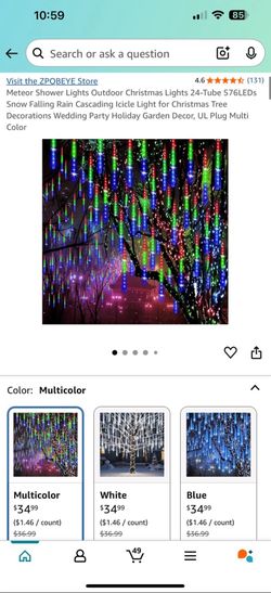 Meteor Shower Lights Outdoor Christmas Lights 24-Tube 576LEDs Snow Falling Rain Cascading Icicle Light for Christmas Tree Decorations Wedding Party Ho$5Riverside, CA