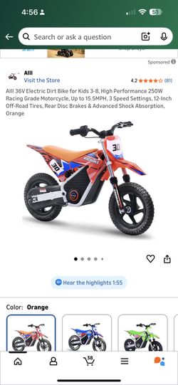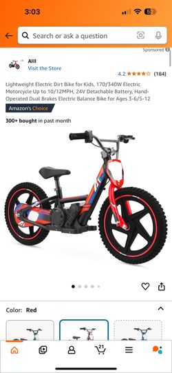 AIII 36V Electric Dirt Bike for Kids 3-8, High Performance 250W Racing Grade Motorcycle, Up to 15.5MPH, 3 Speed Settings, 12-Inch Off-Road Tires, Rear$199Riverside, CA