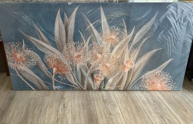 Elegant Oversized Floral Canvas with Soft Neutral Flowers on a Blue Background 29x58 inches New$70Buffalo Grove, IL