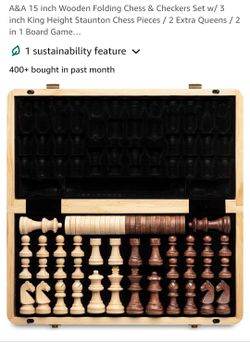 Brand NEW A&A 15 inch Wooden Folding Chess & Checkers Set$30Woodinville, WA