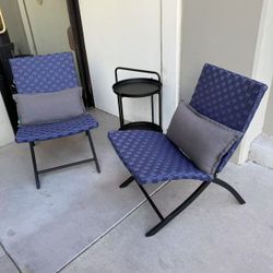 New In Box Set Of 2 Chairs With Rolling Cart Table Outdoor Patio Furniture Chair Wicker Style Furniture Beige Or Navy And Black $75Covina, CA