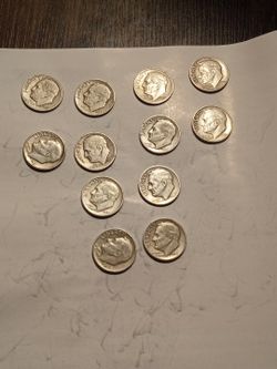 12 Silver Roosevelt Dimes. 90% Silver 1940s$30Clarksville, TN
