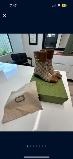 GUCCI Ellis GG Monogram Supreme Canvas & Leather Ankle Boots Brown $600San Diego, CA