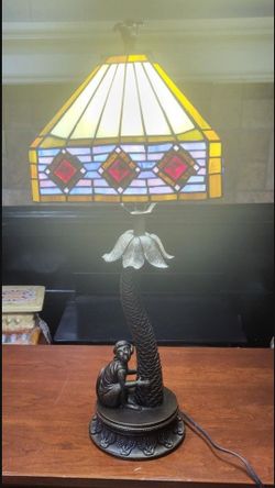 26.5" Vintage Monkey And Palm Tree Table Lamp With Tiffany Style Shade$100Vienna, VA