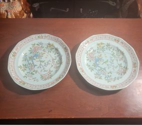 10 1/4" - 2 Vintage Adams Calyx Ware Dinner Plates In The " Singapore Bird " Pattern $30Annandale, VA