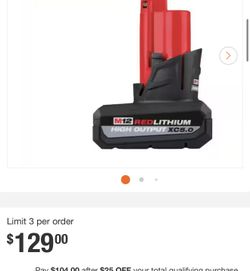 M12 12 Volt Lithium-Ion XC High Output 5.0 Ah Battery Pack$120Hawthorne, CA