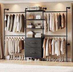 NEW ONBRILL T2 Wall Mounted Industrial Pipe Clothing Rack, Closet Organizers and Storage System with 2 Drawers, 6 Wooden Shelves & 4 Expandable Rods, $60Las Vegas, NV