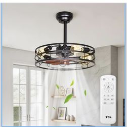 NEW TCL 20" Caged Ceiling Fan with Light and Remote, Low Profile Flush Mount Fandelier, Rustic Farmhouse Style for Bedroom, Outdoor (Black 1, 20 inch)$50Las Vegas, NV