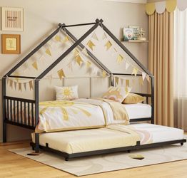 NEW LIKIMIO Twin Daybed with Trundle, DIY House Bed Frame with Raised Headboard & Footboard, Convertible Sofa Bed with Lockable Casters, NO Box Spring$80Las Vegas, NV
