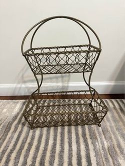 New! Mikasa 2-Tier Lattice Flatback Antique Gold Wrought Iron Fruit Basket w/ Handle. $20San Diego, CA