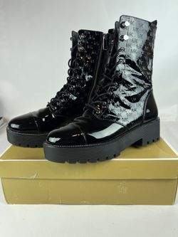 MICHAEL MICHAEL KORS Women's Bryce Logo LaceUp Lug Sole Combat Booties Black 10$130Richmond, TX