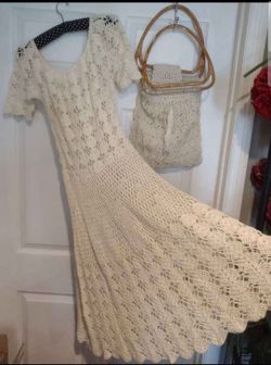 Vintage boho handmade crochet ivory dress with tortoise-shell handbag wedding dress maternity photos$300Hendersonville, TN