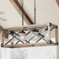 LALUZ Farmhouse Chandelier for Dining Room, Wood Kitchen Island Lighting$150Lindale, TX