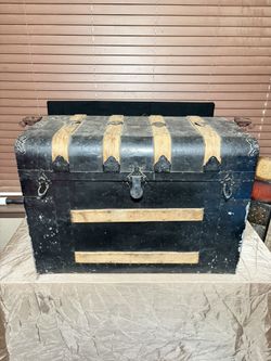 antique steamer trunk with a black metal exterior and wooden slats$100Lindale, TX