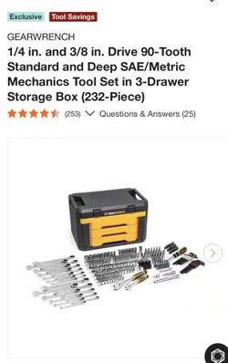 GEARWRENCH 1/4 in. and 3/8 in. Drive 90-Tooth Standard and Deep SAE/Metric Mechanics Tool Set in 3-Drawer$120Renton, WA