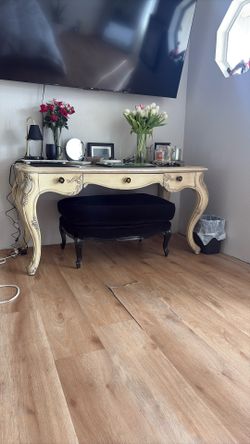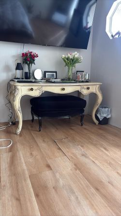 Jessica McClintock desk with real leather and laid on top with dovetail drawers, car legs it’s car I believe inside the drawer with Jessa McClintock’s$2,500Acton, CA