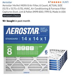 AEROSTAR 14x14x1 MERV 8 Air Filters 5 Pack$25Rcho Santa Fe, CA