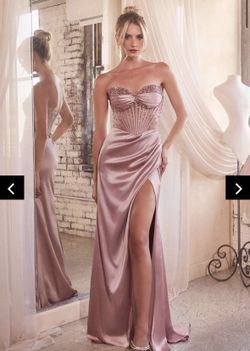 Ladivine Pink Strapless Prom Dress With Beaded Bodice And Leg Slit #prom #formal$175San Francisco, CA
