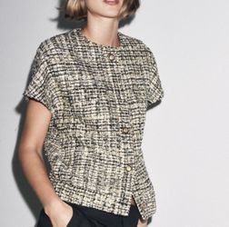 Zara collection black gold sequin tweed button down short sleeve blouse XS S$65West Sacramento, CA