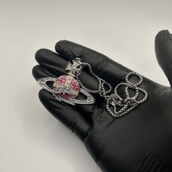 Vivienne Westwood Silver Pink Necklace Orb New Chain Adjustable Pendant 18”$50Houston, TX
