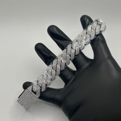 Moissanite Cuban Bracelet Miami 4 Row Iced Hip Hop Silver 20mm 6.5 Inch Read Des$150Katy, TX