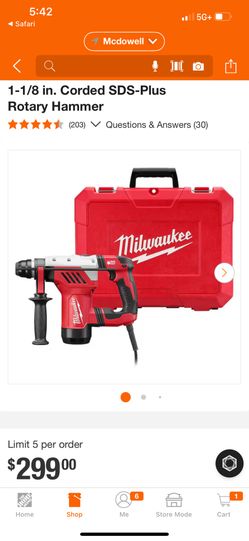 Milwaukee 1-1/8 in. Corded SDS-Plus Rotary Hammer$200Phoenix, AZ