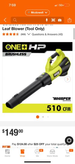 RYOBI 18V ONE+ HP Brushless Cordless 130 MPH 510 CFM Leaf Blower (Tool Only)$100Phoenix, AZ