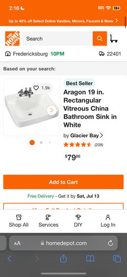 Aragon 19 in. Rectangular Vitreous China Bathroom Sink in White$15King George, VA