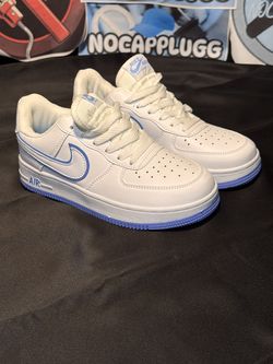 Nike Air Force 1 White Leather Sneakers with Blue Accents$60Holland, MI