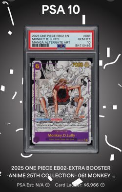 PSA 10 Eb02 Manga Luffy $7,500Santa Monica, CA