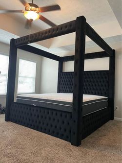 ๐ Brand New Black Upholstered King & Queen Size Canopy Bed Frame W/ BT Speakes & Charging Ports - Opt Mattress | Pay After Delivery ๐ $775Atlanta, GA