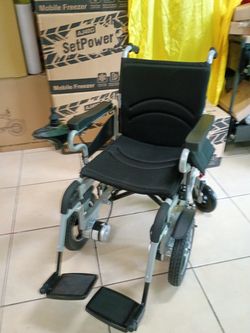FOLDING ELECTRIC WHEEL CHAIR DUAL MOTOR 500W FRONT DRIVE DESIGN SPEED 6MPH -RANGE +12 MILES.