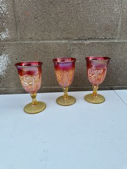 Lot of 3 Vintage Indiana Carnival Glass Amberina Sunset Iridescent 70s Glasses$35Citrus Heights, CA