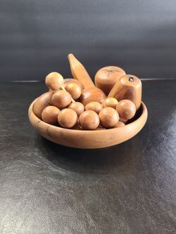 MCM Carved Wooden Fruit In Bowl$10Grayslake, IL