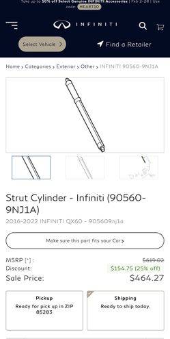 Infinity Strut Cylinder 2016-2022 QX60$350Tacoma, WA