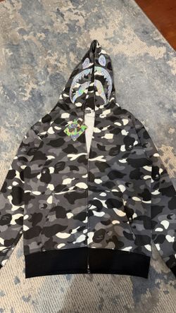 BAPE City Camo Shark Full Zip Hoodie in black with a partially luminescent print and a hologram appliqué on the hood.$150Columbus, OH